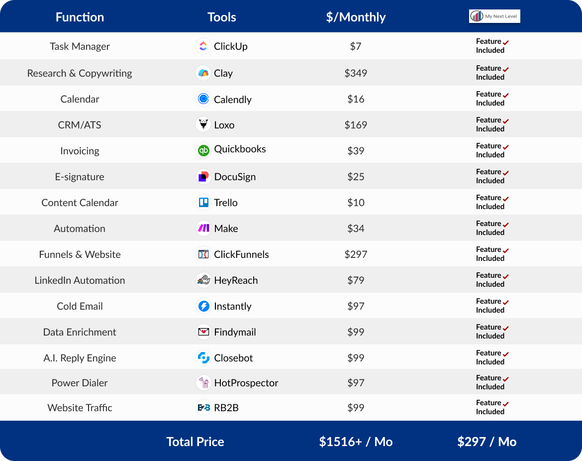 The My Next Level AI Platform is everything that marketers need to manage their leads, websites, funnels, calendars and many other services that are needed to maintain a customer.