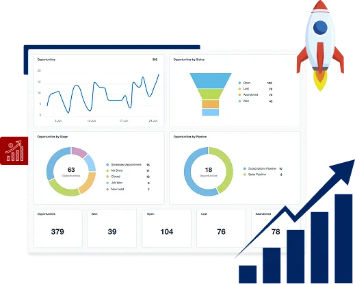Our dashboard keeps an overview of where the leads are, and how much money has been generated on each phase.